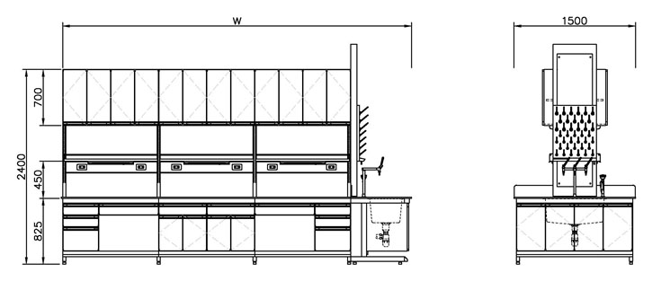 中央實驗水槽桌/門型壁櫃/鋼製藥架-鋼吊鋼-4380x1520x825/2400 mm