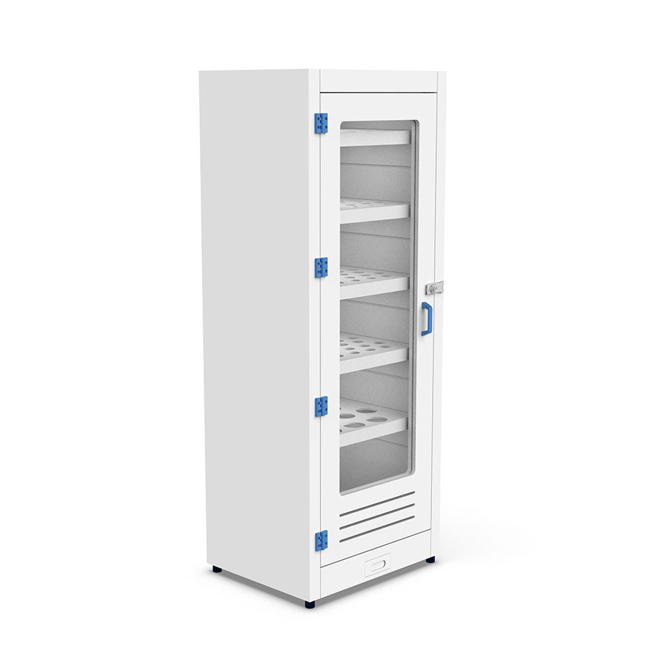 - 內部多層PP層板,板面開孔設計,可有效固定試管、錐形瓶、量筒等各式玻璃器皿,利於自然風乾與通風排濕。