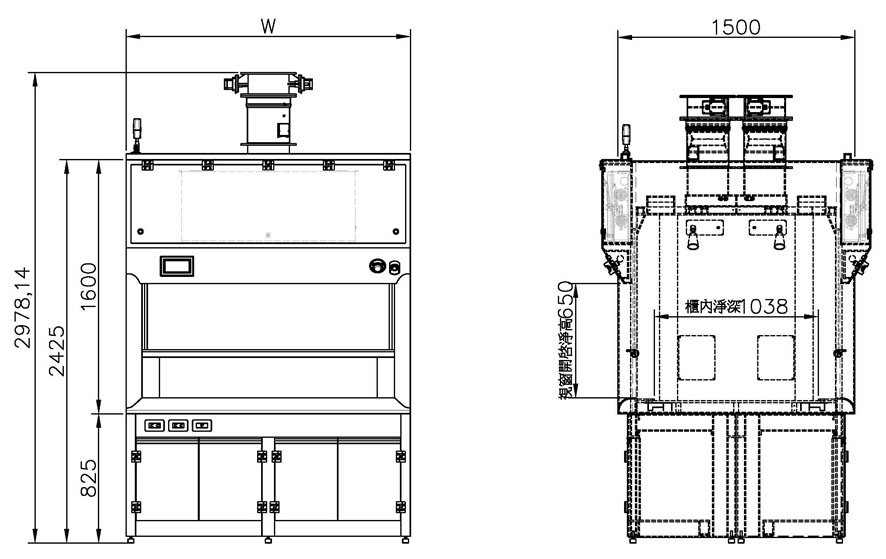| 設備尺寸(mm) | 1500wx1500dx2425h | 1800wx1500dx2425h | 2400wx1500dx2425h |