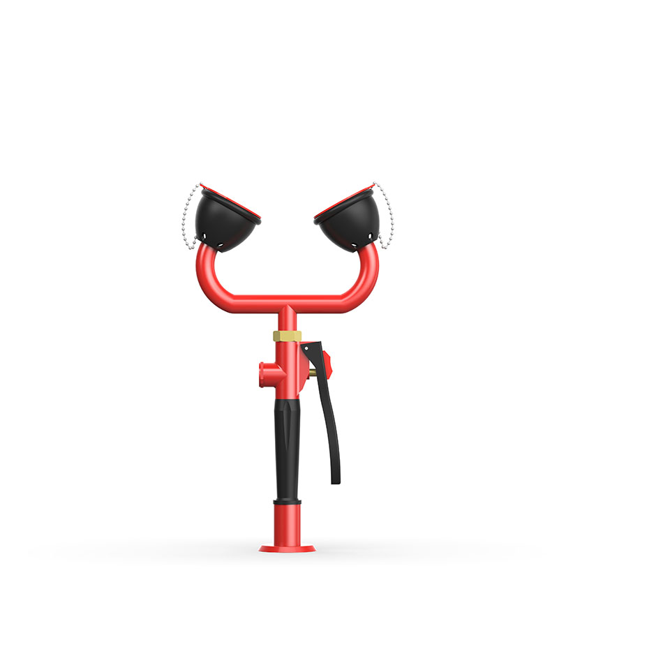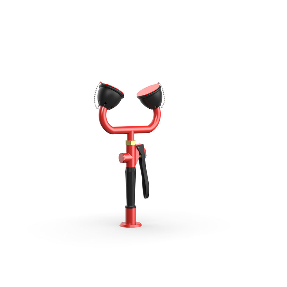 紅色金屬材質,堅固耐用,可穩定支撐雙噴頭並確保正確角度對準眼睛。 - 啟動控制閥門(側邊)