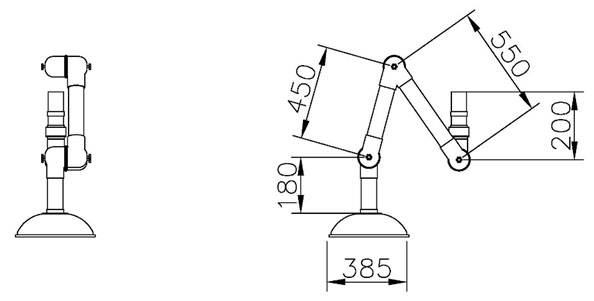 結構由多段關節連桿組成,具備完整的多軸自由旋轉與定位功能。 - 關節結構(萬向臂)