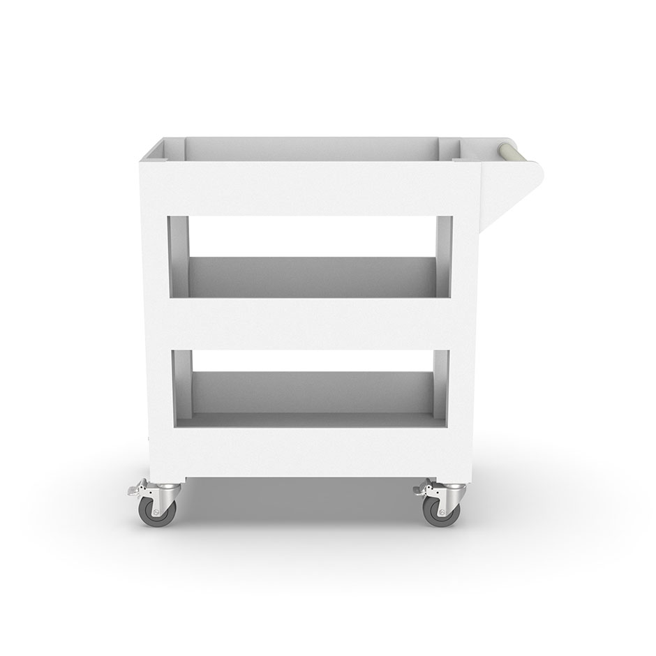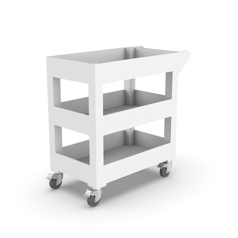 這是一台PP三層推車(內包鋼管結構),設計強調耐化學性、輕量化與高結構強度,常應用於實驗室、半導體廠、藥廠無塵室或化學品搬運等場域。它結合了聚丙烯(PP)外殼的抗腐蝕特性與鋼管骨架的堅固支撐力,是一款兼具安全與實用的實驗室級搬運推車。