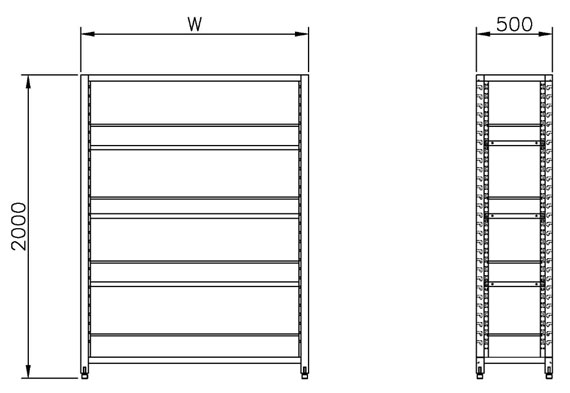 鋼製開放型可調層板置物架1500x500x2000 mm