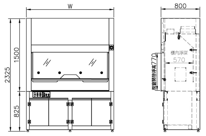前方配有透明耐腐蝕玻璃視窗,具上下滑動功能,方便操作儀器與樣品,同時兼顧氣流隔離功能,提升操作安全性。 - 整合供應與儲存功能