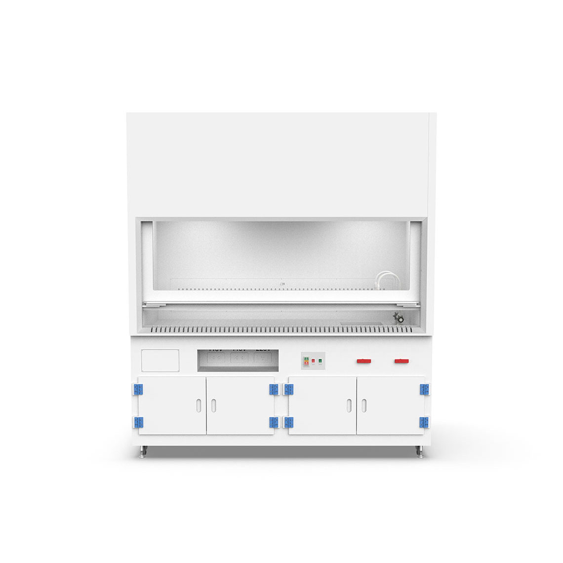 - 門檻格棚抽氣:櫃前下緣設置格棚式抽氣口,可將操作時逸散的氣體迅速引導至下方,再與後方抽氣管路合流排出,強化整體抽氣效果並避免污染擴散。 - 孔洞台面設計
