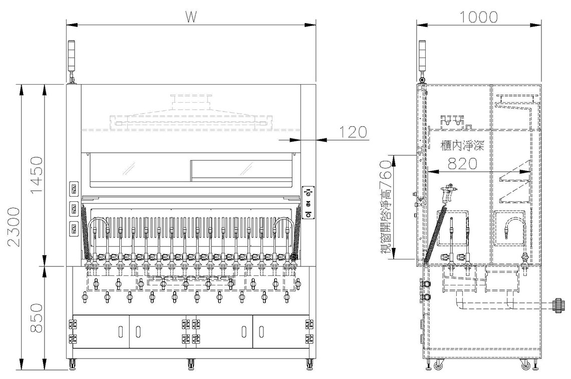 | 設備尺寸(mm) | 1500wx1000dx2300h | 1800wx1000dx2300h | 2000wx1000dx2300h |