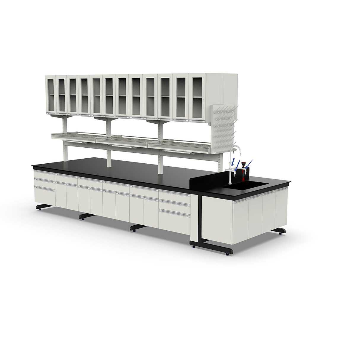 鋼製懸吊式下櫃(模組化設計):- 下方櫃體採用鋼製懸吊模組結構,可依實驗需求自由組合。