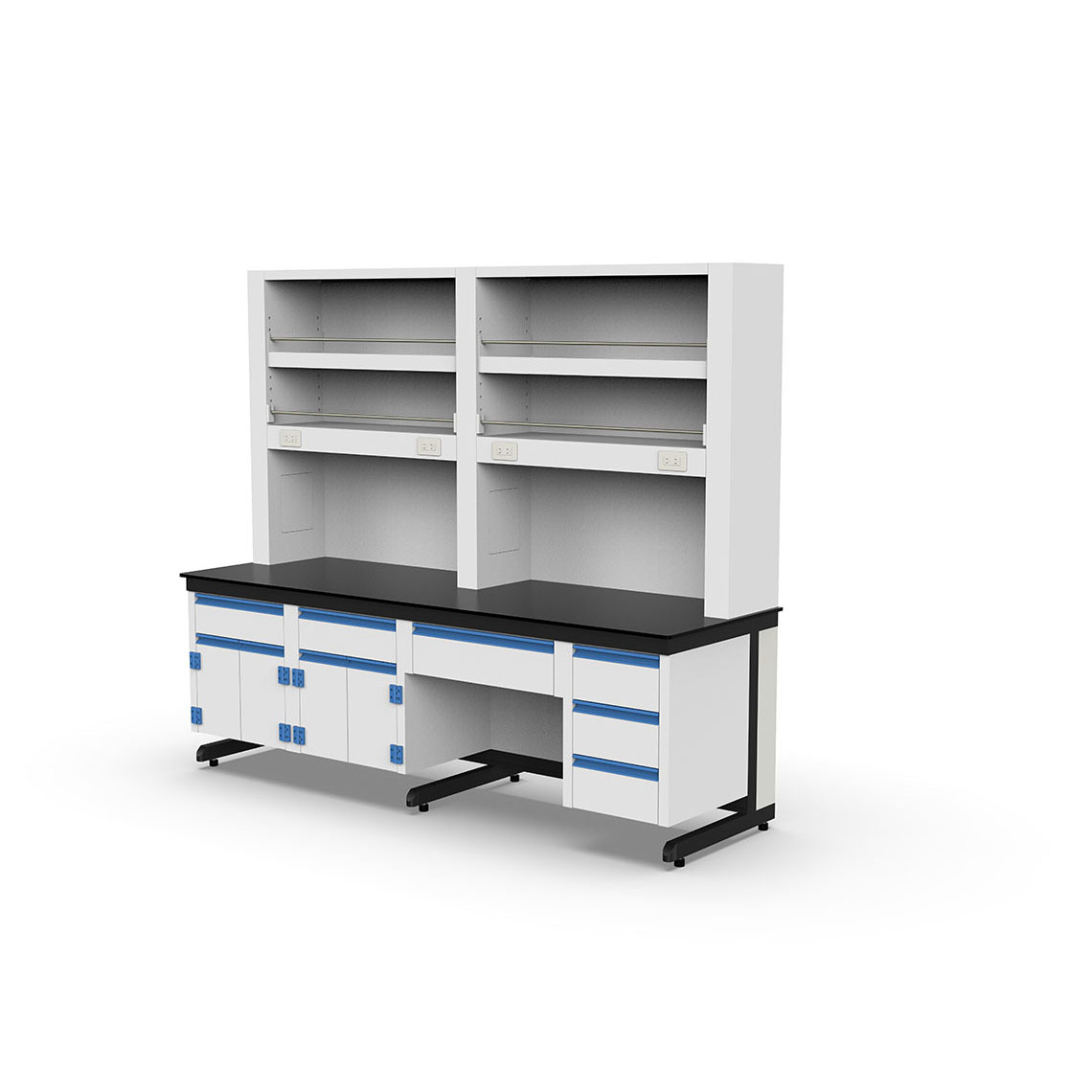- 台面材質:實驗桌面採用可耐王水等級化學板,具有優異的耐腐蝕、耐高溫與抗刮性能。